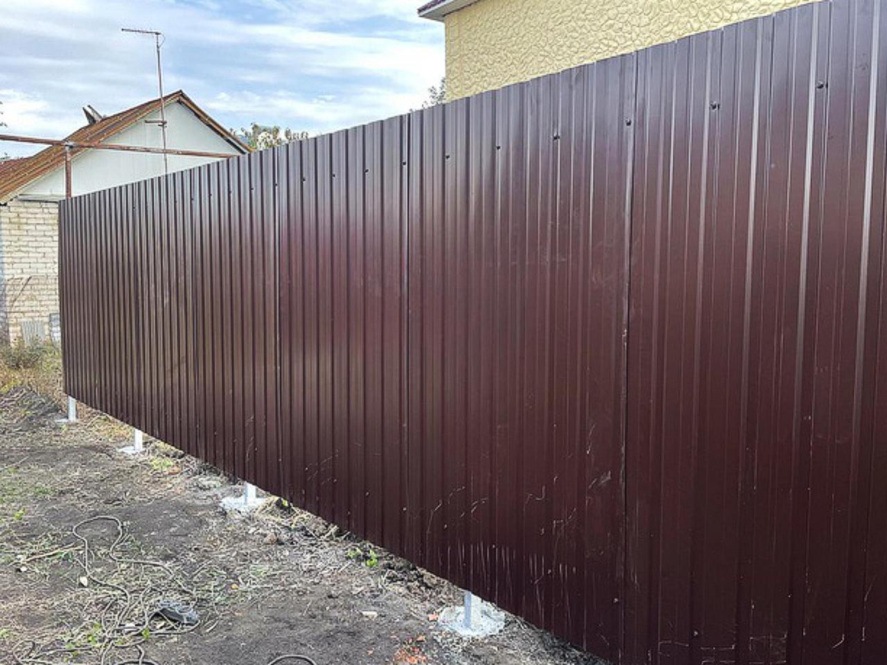 Рассмотрите, пожалуйста, готовый вариант забора из профлиста с калиткой под ключ в Дзержинском. Ниже в таблице представлены характеристики, комплектация и цена.